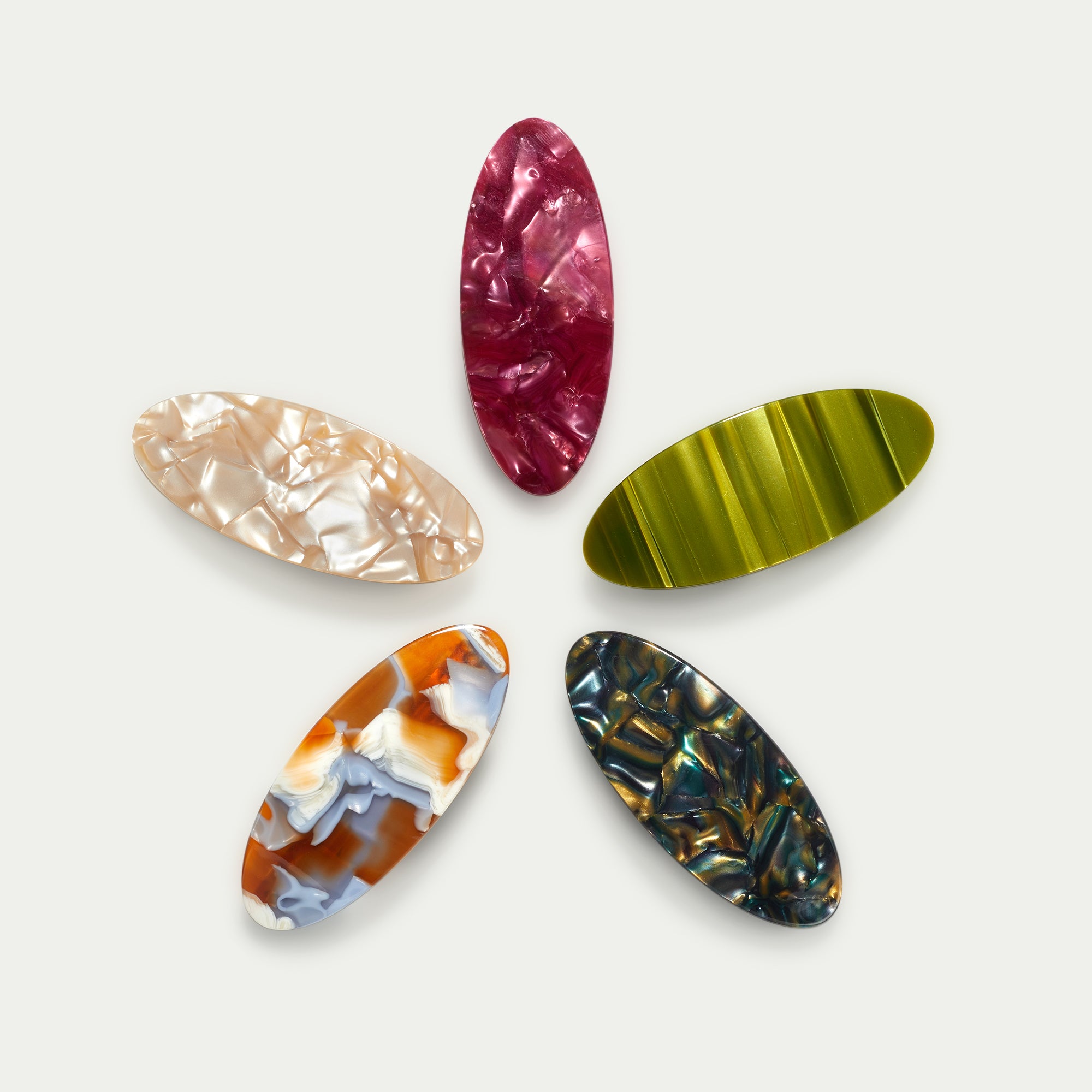 Introducing our latest contemporary hair accessory: The Oval Barrette. Sleek and instantly elevates, available in five beautiful colours to match every hair colour and style.